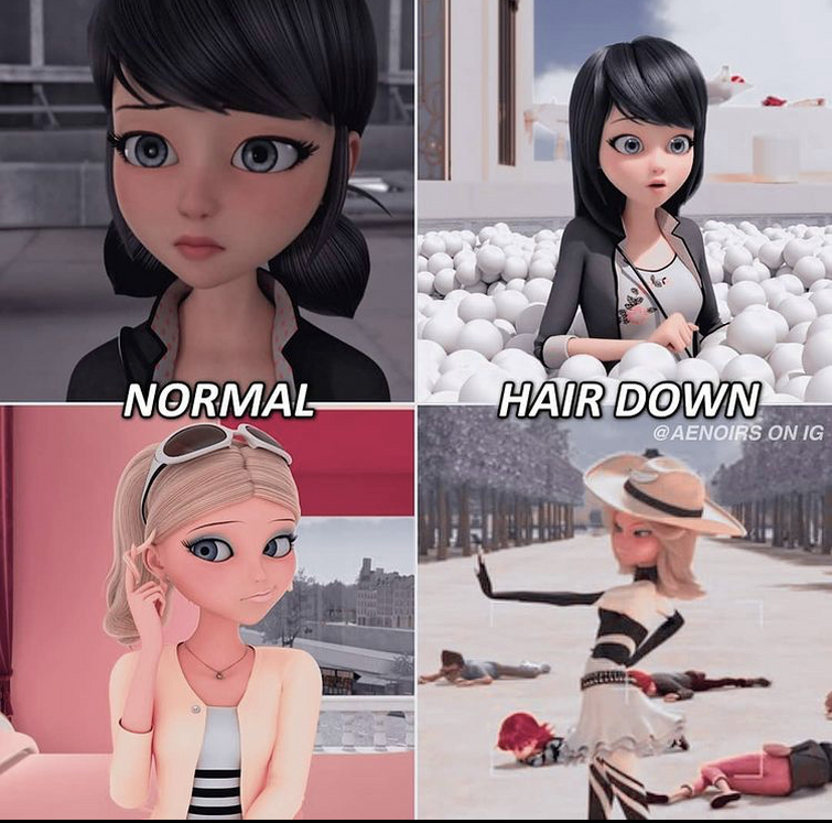 Web Aside from differentiating the time lines there is also the phrase to let your hair down. Tales of Ladybug Chat Noir. Web Marinette letting her hair down is symbolic for her being at peace and happy and finally getting to be a joyful young girl without stress and doubts.
